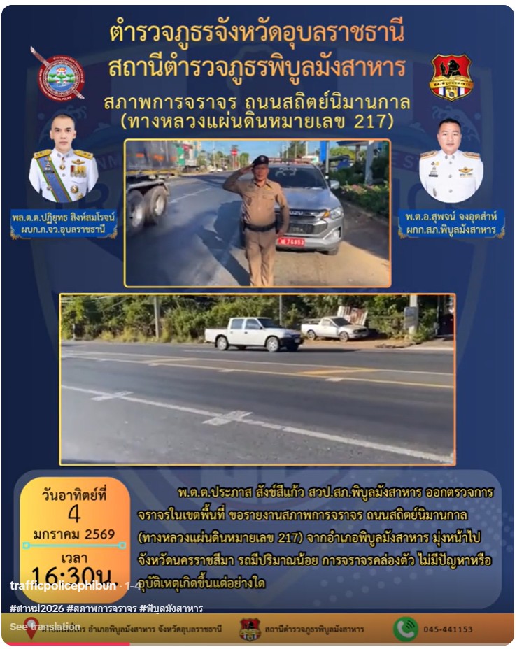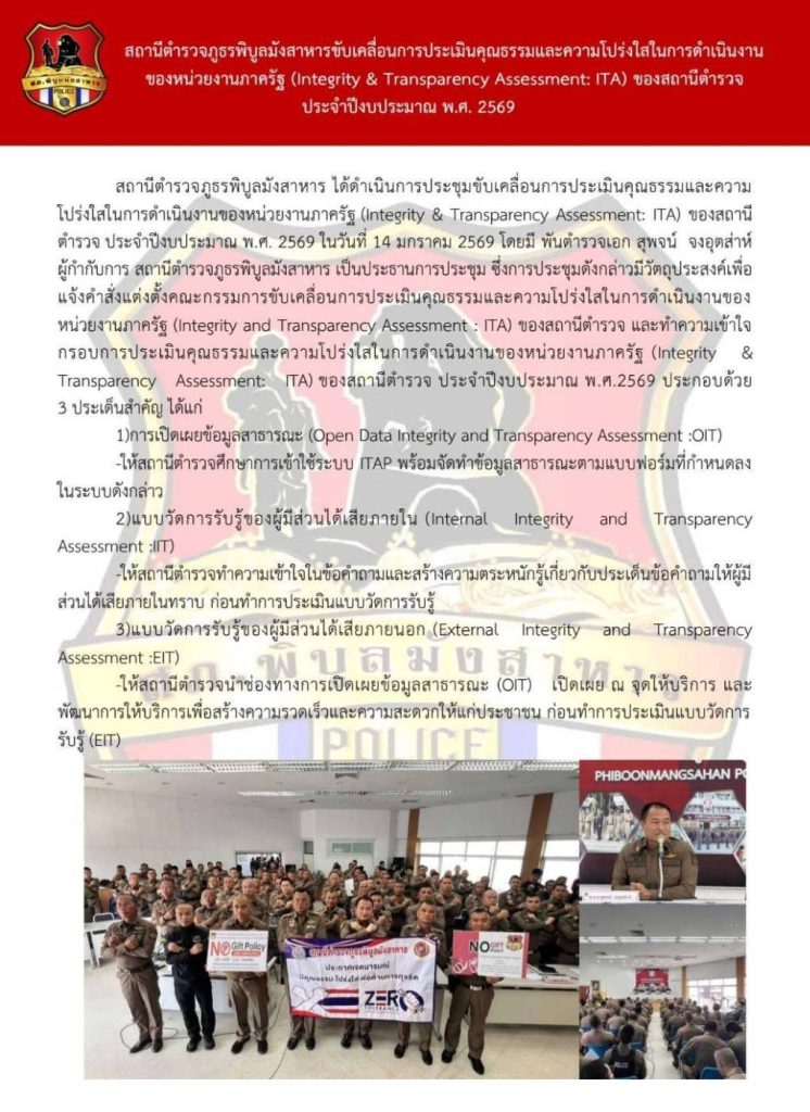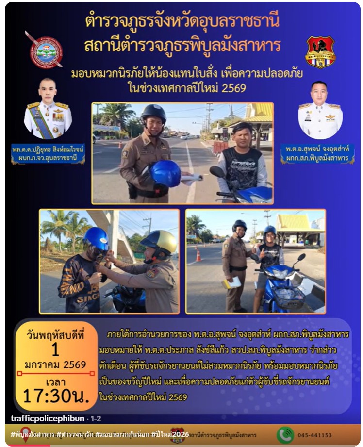สภ.พิบูลมังสาหาร วันนี้ (14 ม.ค. 2569) เวลา 10.00 น. พ.ต.อ.สุพจน์ จงอุตส่าห์ ผกก.สภ.พิบูลมังสาหาร พ.