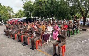 เมื่อวันที่ 17 ต.ค. 2567 พ.ต.ท.โชคไสว พรมเคน รอง ผกก.(สอบสวน)ฯ รรท.ผกก.สภ.พิบูลมังสาหาร พร้อมด้วยคณะข้าราชการตำรวจในสังกัด และ คณะ กต.ตร.สภ.พิบูลมังสาหาร ได้ร่วมกันทำบุญตักบาตร เนื่องในวัน “สถาปนาสำนักงานตำรวจแห่งชาติ” ณ บริเวณลานหน้าอาคารที่ทำการ สภ.พิบูลมังสาหาร