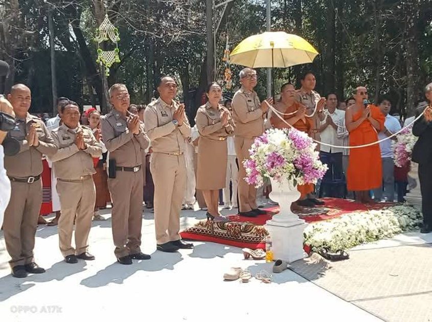 เมื่อวันที่ 9 มี.ค. 2568 พ.ต.อ.พรศักดิ์ เหลือนาค ผกก.สภ.พิบูลมังสาหาร,พ.ต.ท.มรกตภูมิ พลศักดิ์ รอง ผกก.ป.ฯ,พ.ต.ต.คมกริช จันทร์สอน สวป.(ชส.)ฯ,หัวหน้าส่วนราชการ,ประชาชนในพื้นที่ และ นายทวีพล ปรัสพันธ์ ประธาน กต.ตร.สภ.พิบูลมังสาหาร และ คณะ กต.ตร.สภ.พิบูลมังสาหาร ร่วมพิธียกฉัตรสัตตบริภัณฑ์ 7 ชั้น 7 ยอด ประดิษฐานบนหลังคมศาลาปฏิบัติธรรม ณ สำนักปฏิบัติธรรมพระธรรมธีรราชมหามุนี บ้านห้วยแดง ต.ดอนจิก อ.พิบูลมังสาหาร จ.อุบลราชธานี