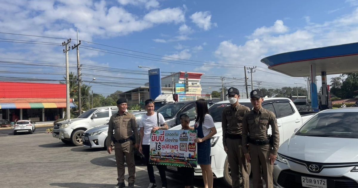 ออกประชาสัมพันธ์ “ขับขี่ปลอดภัย เมืองไทยไร้อุบัติเหตุ เมาไม่ขับ ปฏิบัติตามกฎจราจร” บริเวณ ปตท.สนามชัย