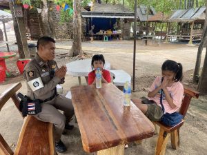 ร.ต.ต.กชพรรณ มีสุข ร้อยเวรผู้ช่วยจราจร ร.ต.ต.ภานุวัฒน์ คำทอง พร้อมสายตรวจจราจรว4วัดป่าปากโดมดูแลพบปะเยี่ยมเยียนญาติธรรมในวันสำคัญทางพระพุทธศาสนา”วิสาขบูชา”