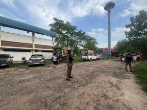 ร.ต.ท.คเชนทร์ รอดคำทุย รอง สว.(ป.)ฯ พร้อมด้วย โล่20 สายตรวจรถจักรยานยนต์ ว.4 ป้องกันเหตุ หน้ารร.พิบูลฯและข้างสนามกีฬากลาง