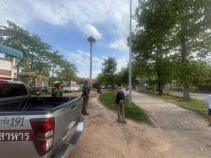 ร.ต.ท.คเชนทร์ รอดคำทุย รอง สว.(ป.)ฯ พร้อมด้วย โล่20 สายตรวจรถจักรยานยนต์ ว.4 ป้องกันเหตุ หน้ารร.พิบูลฯและข้างสนามกีฬากลาง