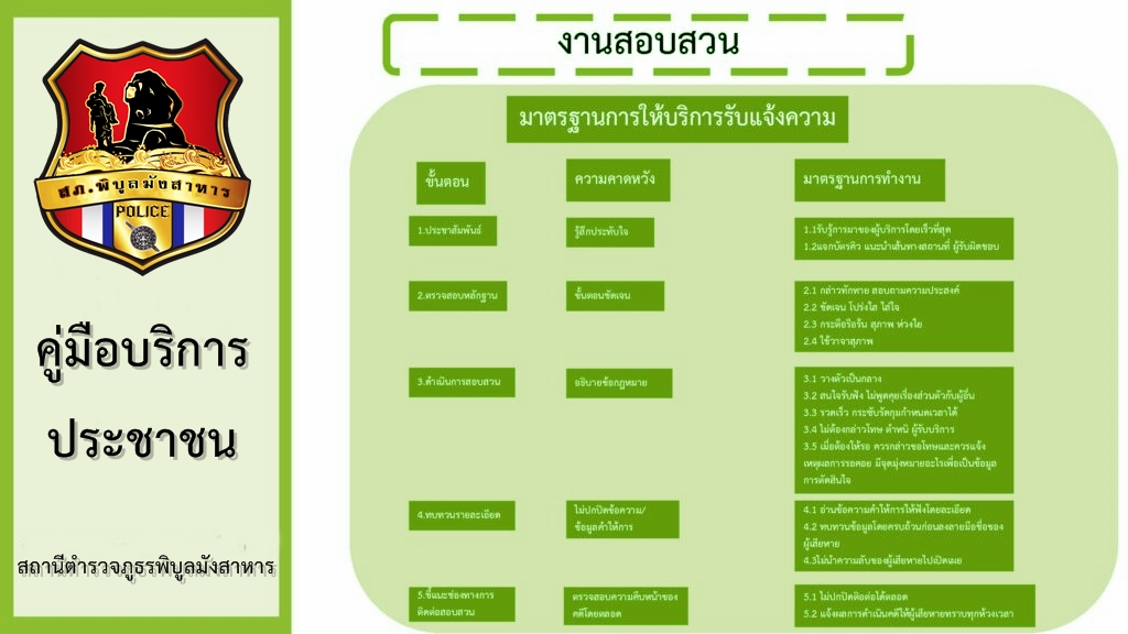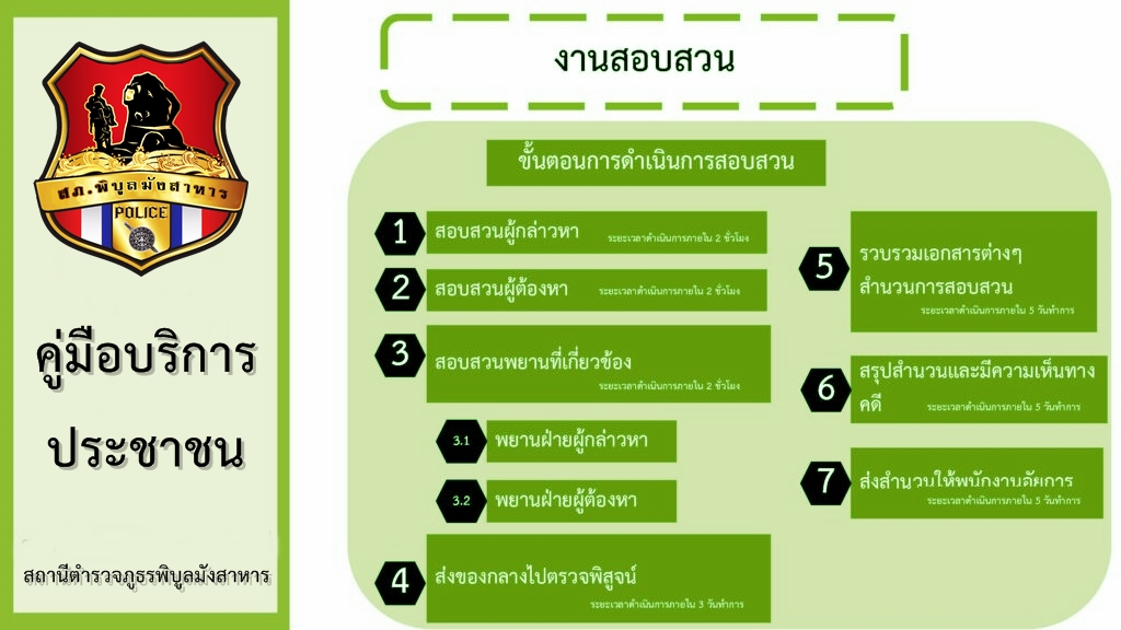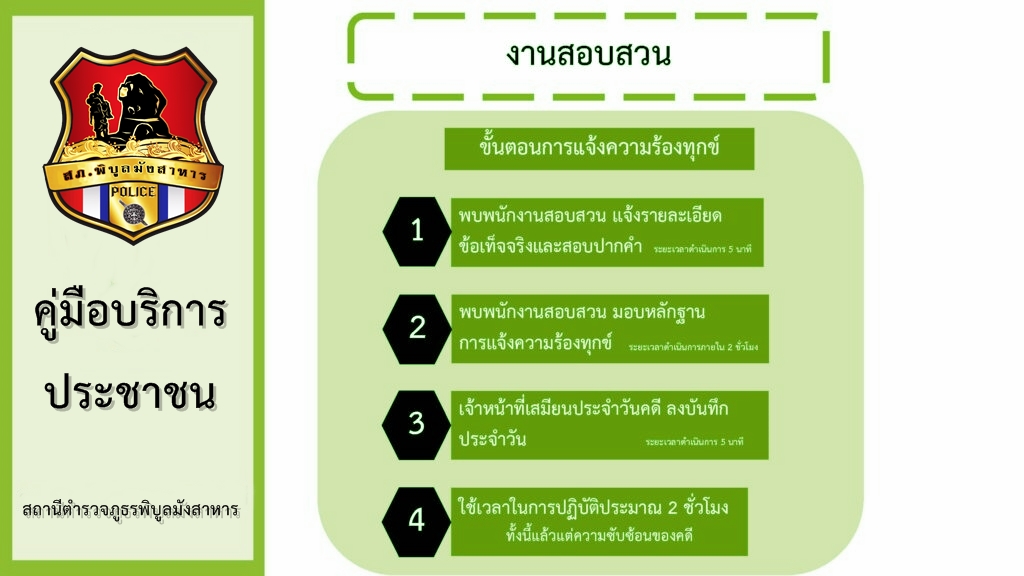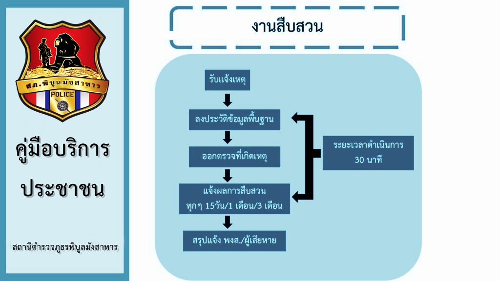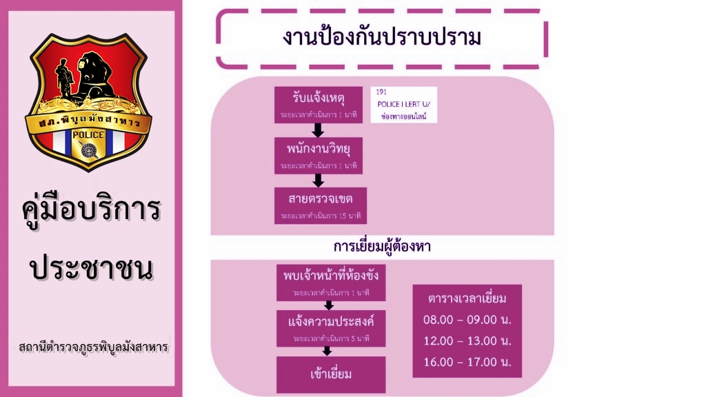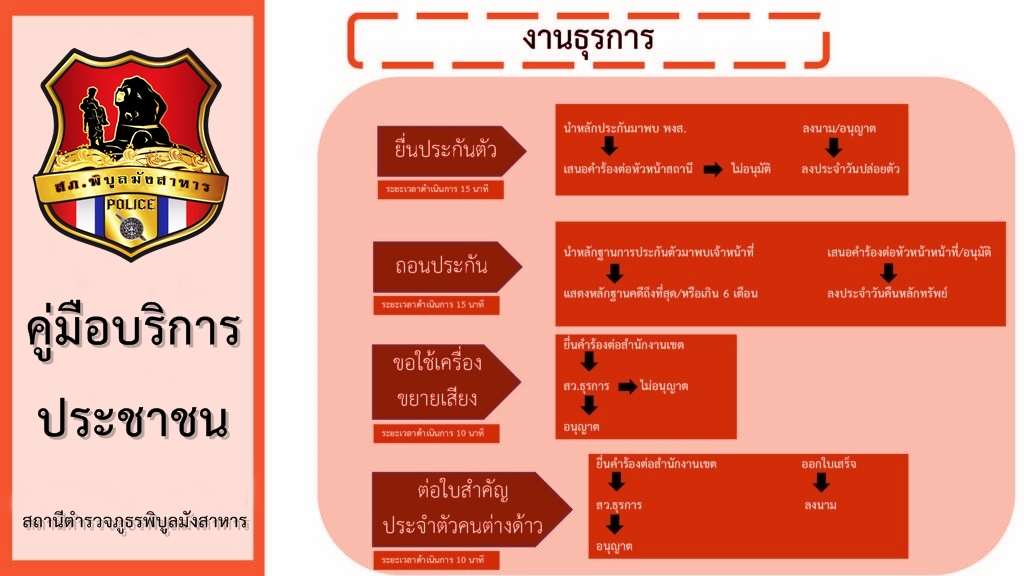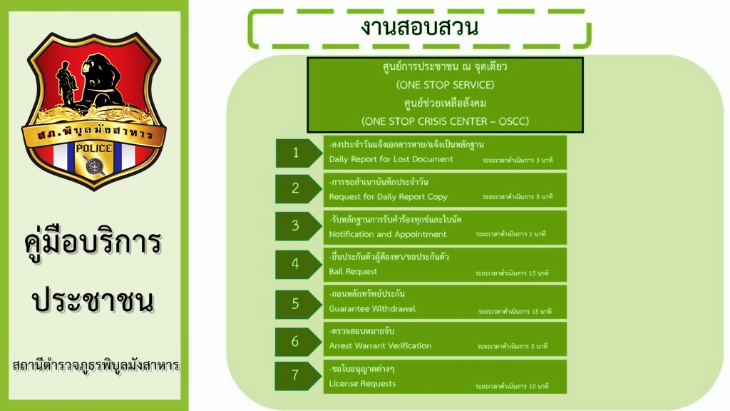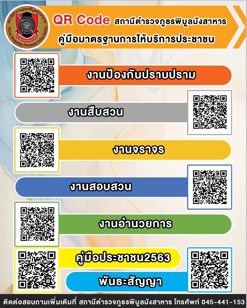 การแสดงคู่มือการให้บริการประชาชน โดยการติดป้าย qr code คู่มือการให้บริการประชาชนประกาศ ณ ห้อง One Stop Service ,หน้าห้องพนักงานสอบสวนและที่บอร์ดประชาสัมพันธ์ ของ สภ.พิบูลมังสาหาร