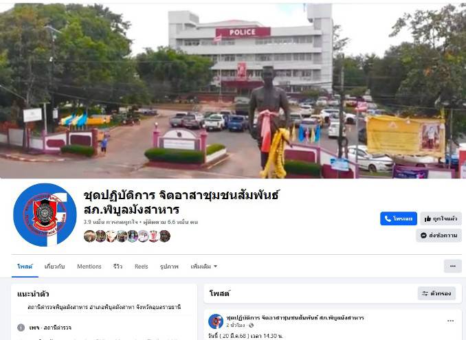 - ประชาสัมพันธ์ข้อมูลข่าวสาร เช่น ข้อมูลจราจร การดูแลความปลอดภัยในชีวิตและทรัพย์สิน โดยเผยแพร่ ประชาสัมพันธ์ ในปีงบประมาณ พ.ศ. 2568 เผยแพร่สื่อสังคมออนไลน์ของ สภ.พิบูลมังสาหาร ดังนี้